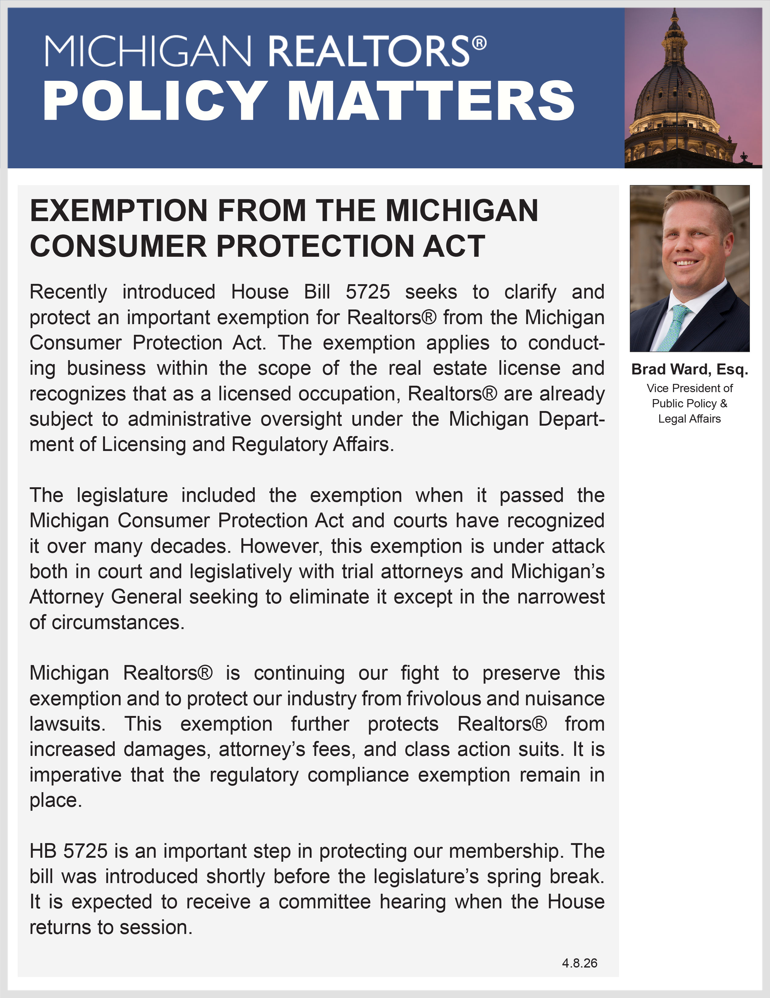 We will continue to monitor the Court’s docket to determine any next steps. As it stands, this is a great outcome that supports the shared mission of Michigan Realtors® and its local association partners – providing advocacy, unparalleled professional development opportunities, and protecting private rights in the state of Michigan.
